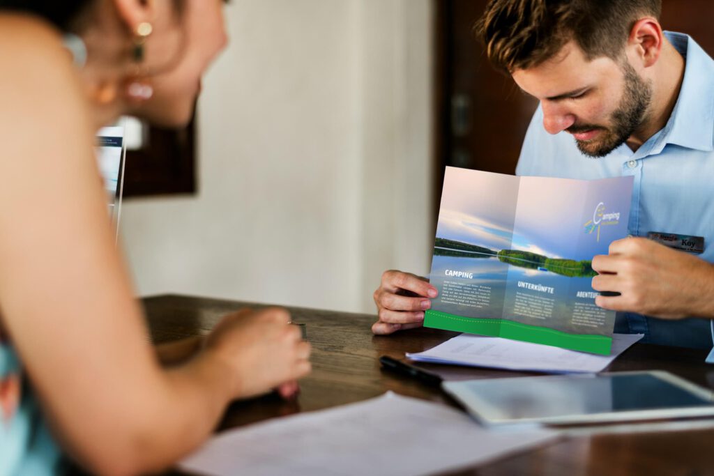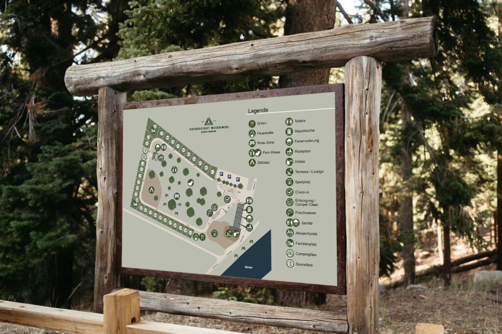 Wir gestalten Logos, Lagepläne und Printprodukte für Campingplätze – entweder komplett neu oder als gezielte Weiterentwicklung bestehender Gestaltungen, mit dem Ziel, moderne und klar positionierte Campingplatz-Marken mit hohem Wiedererkennungswert zu schaffen. Gerade in einer Zeit permanenter digitaler Reizüberflutung gewinnt die klassische, greifbare Printlösung wieder an Bedeutung. Damit Informationen auf Lageplänen, in Gästemappen und auf Menükarten vor Ort sofort verständlich sind, denken wir digitale und gedruckte Gestaltung konsequent gemeinsam und verknüpfen beide Bereiche zu einem stimmigen, durchgängigen Gesamtauftritt.